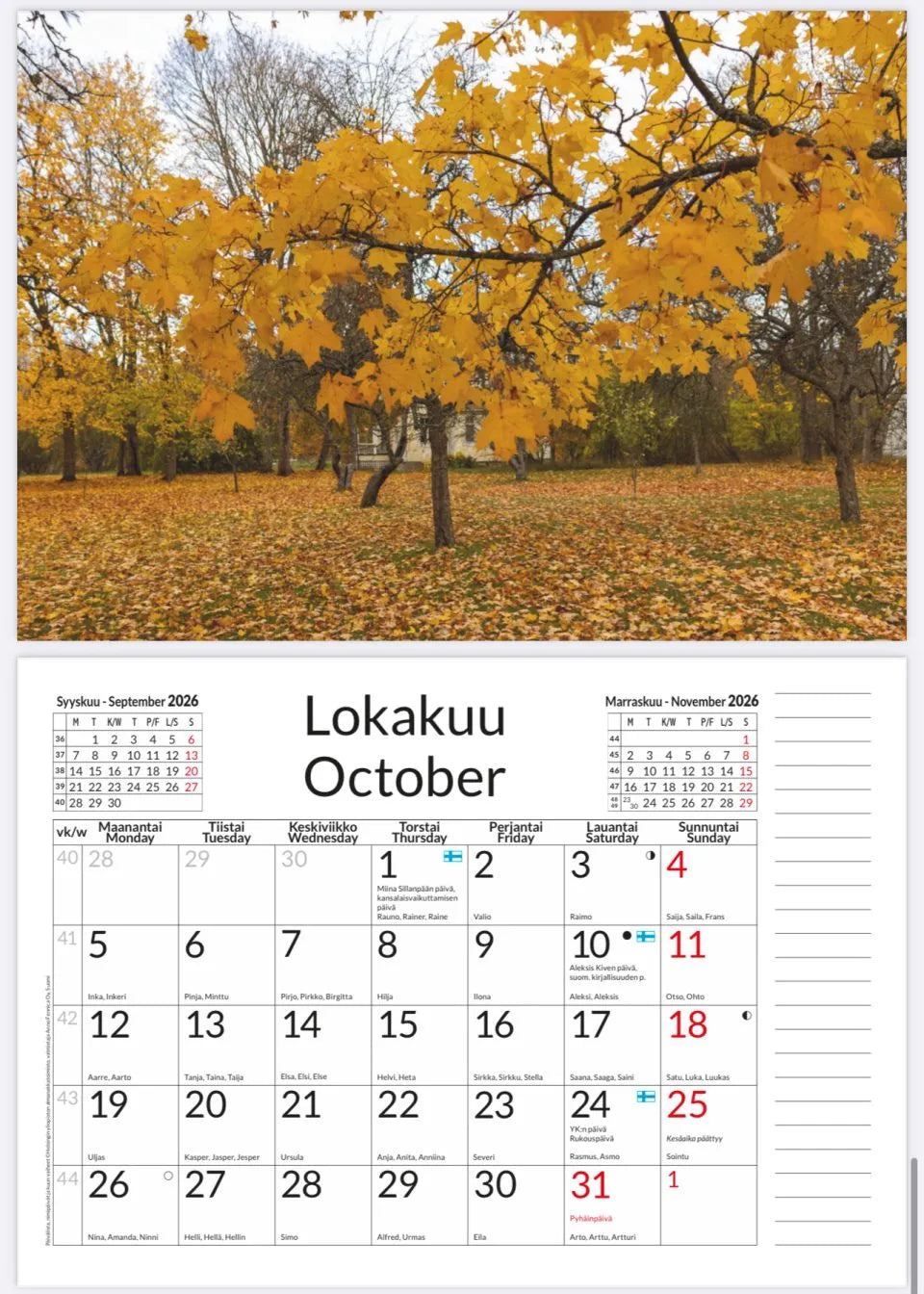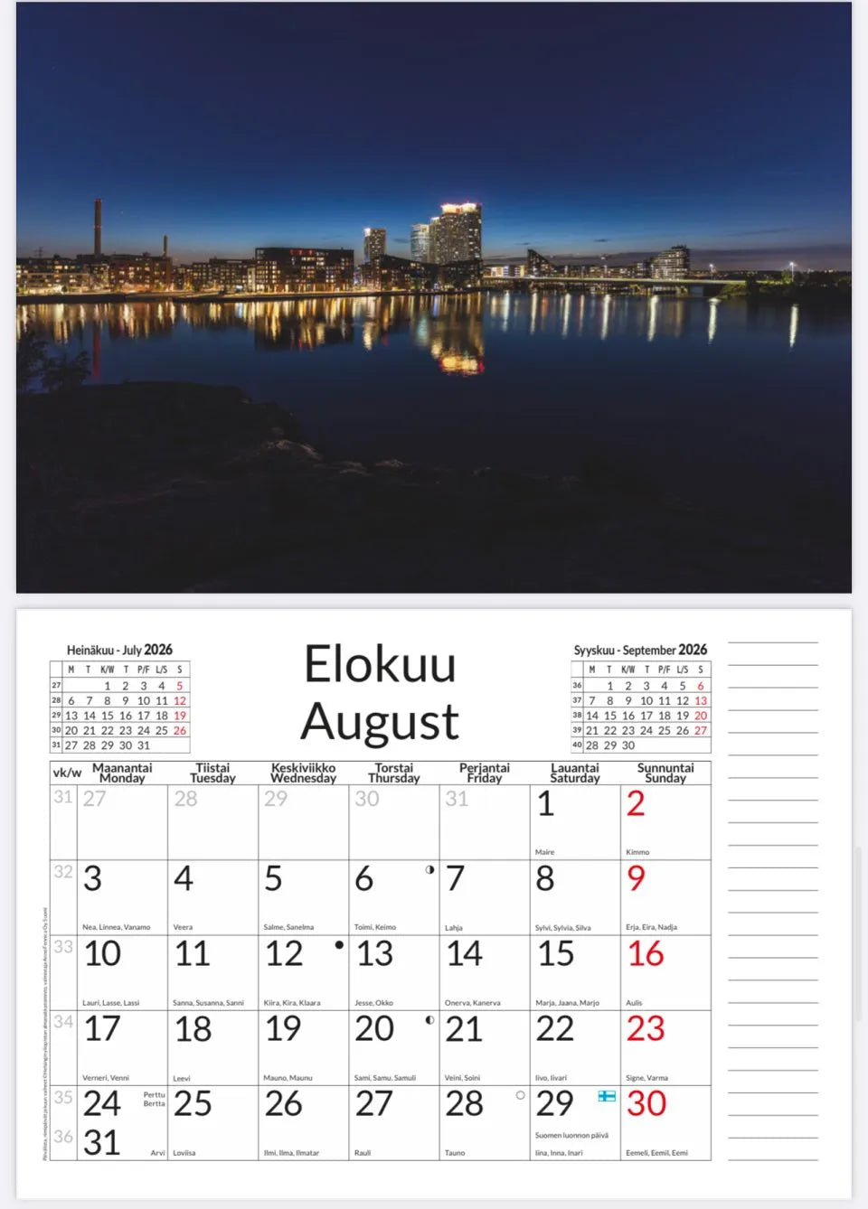 - mukana koko vuoden kalenteri yhdellä sivulla